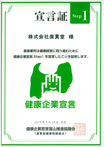 当社は、企業として従業員の健康維持を推進するため、「とやま健康企業宣言」を実施しています。